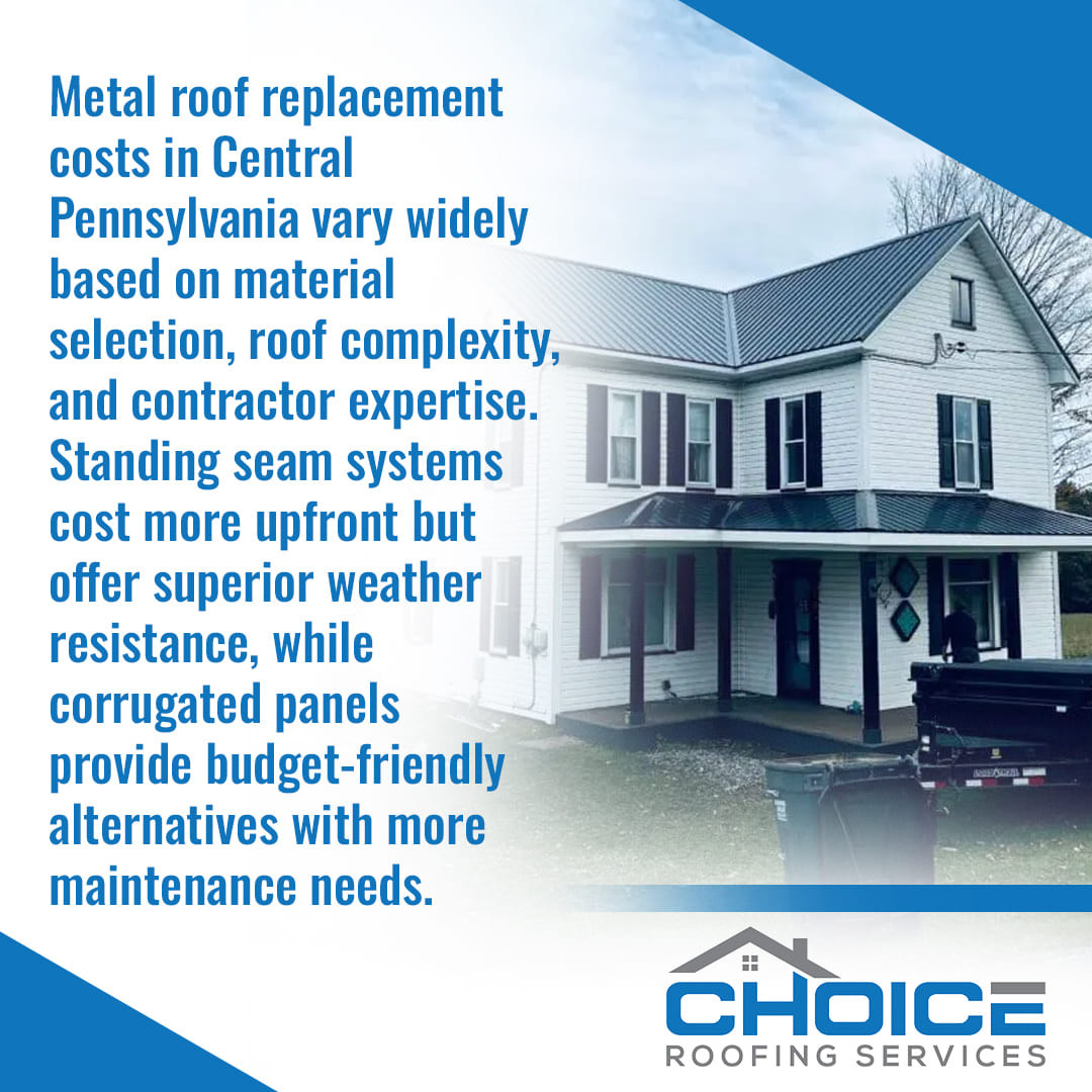 Original Source: https://callchoiceroofing.com/5-factors-that-influence-metal-roof-replacement-costs-in-central-pennsylvania/
